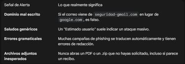 Regla de oro: Google nunca te pedirá tu contraseña, número de tarjeta de crédito o información personal sensible a través de un correo electrónico.